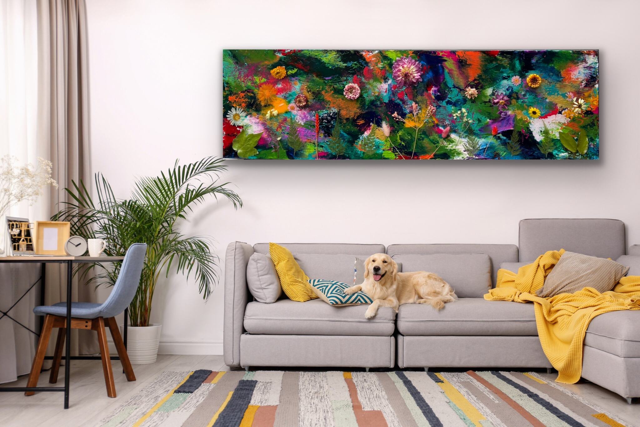 This work is not just static, it’s an evolving narrative that invites viewers to reflect on their personal experiences of growth and change. While the abstract background will endure, the flowers represent the ephemeral nature of life, reminding us to cherish each moment. This piece truly encapsulates the delicate balance between permanence and impermanence, inviting contemplation and appreciation for the beauty in both.
